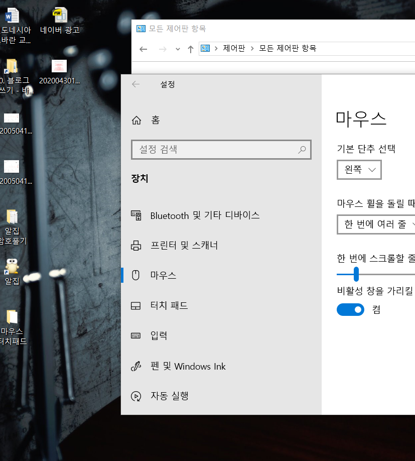 특히나 노트북을 사용하는데 마우스를 이용하니까 커서는 움직이는데 마우스 패드에 손가락을 데도 마우스커서가