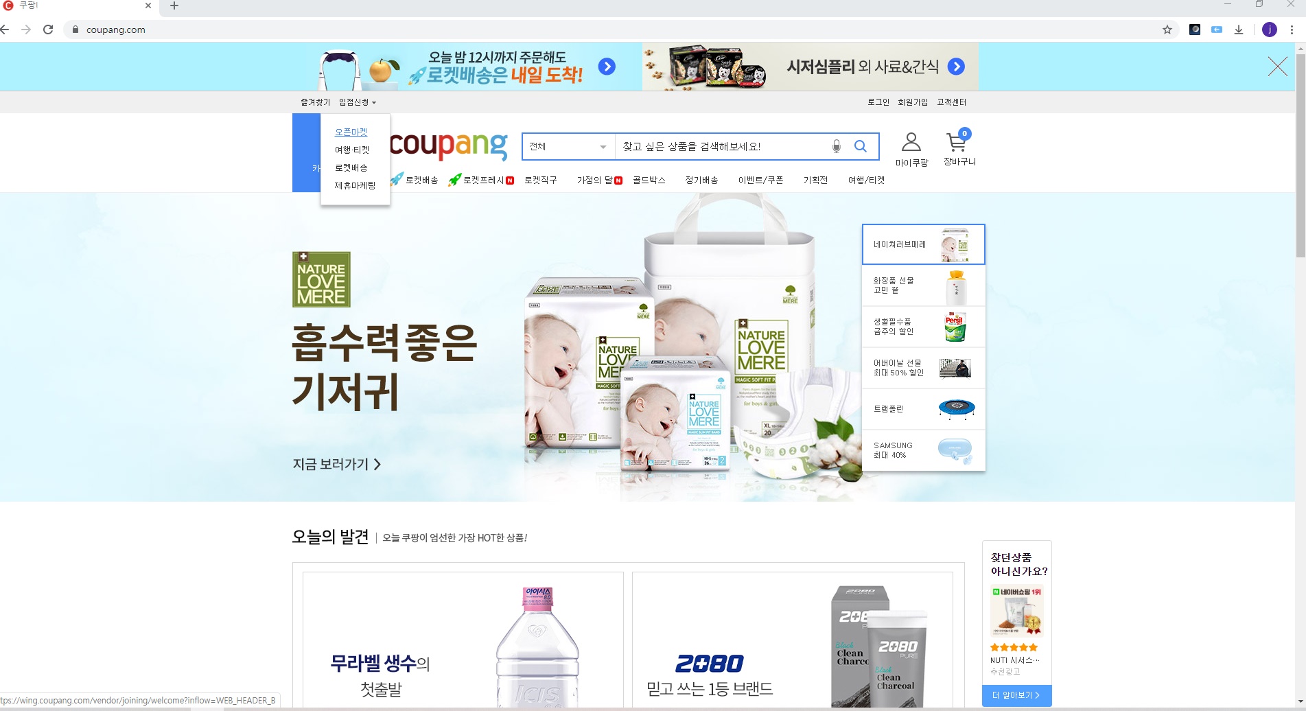 # 1번 : 쿠팡에 들어가서 오픈마켓을 클릭합니다.
