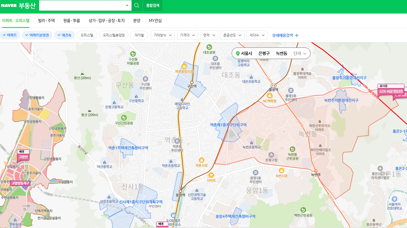 # 네이버 부동산 은평구 클릭시 - 왼쪽 신버전 // 오른쪽 구버전