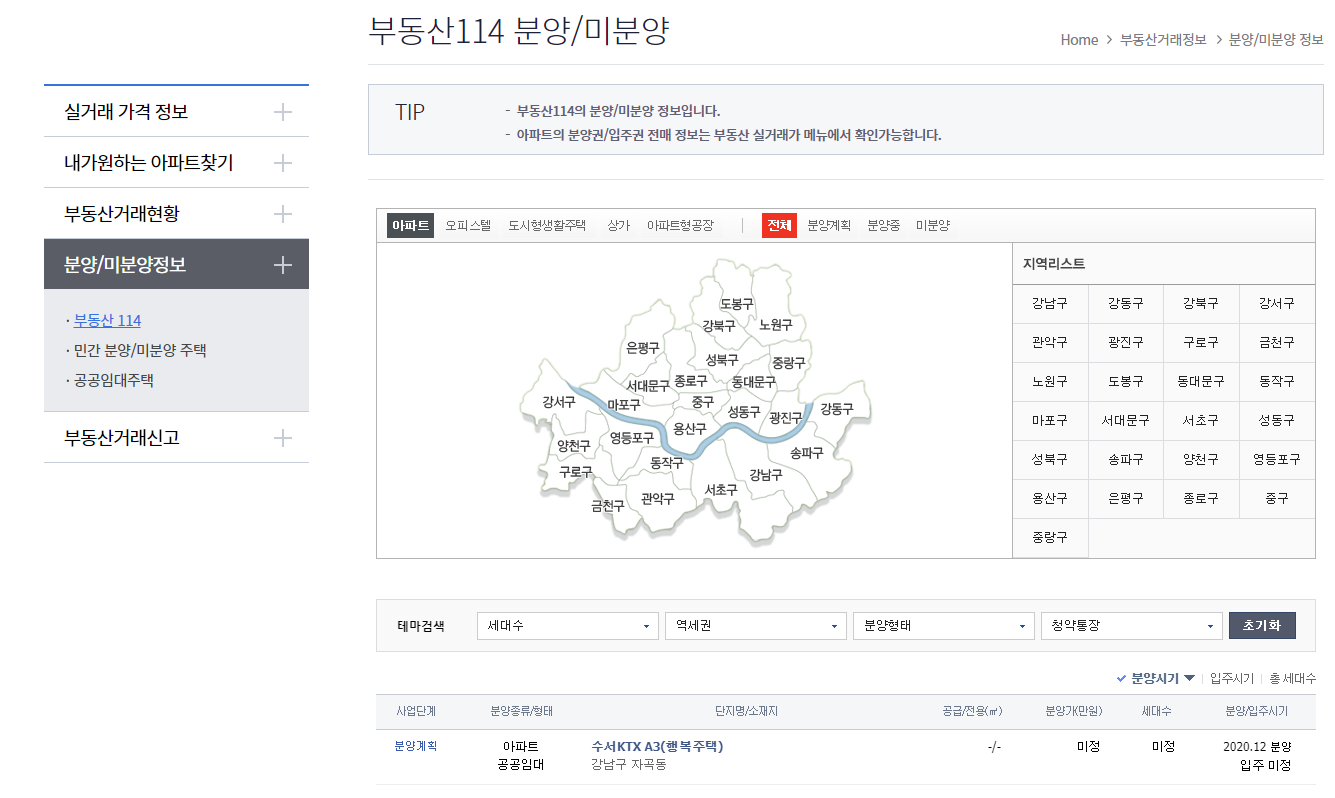 # 서울 부동산 정보광장 - 분양/미양분