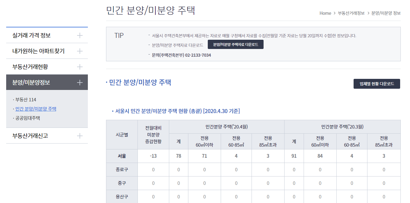 특히나 부동산 114의 경우 분양권/ 미분양 수치를 가장 잘 알려주는 사이트다.