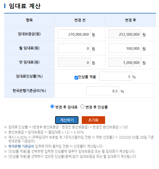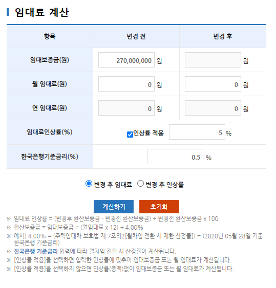 여기서 변경후 임대료 정보를 입력하라는 화면이 있습니다.