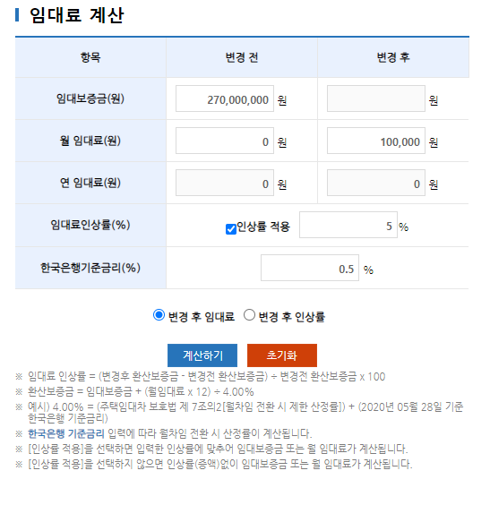 중요한거는 월세가 있는경우는 5%가 아닌 한국은행 기준금리에 의해서 변경되는거고
